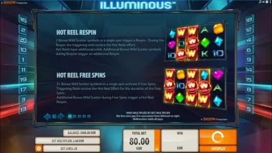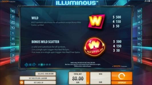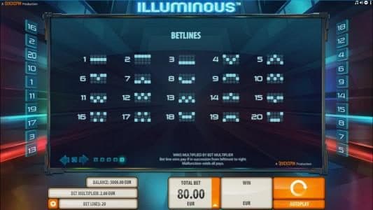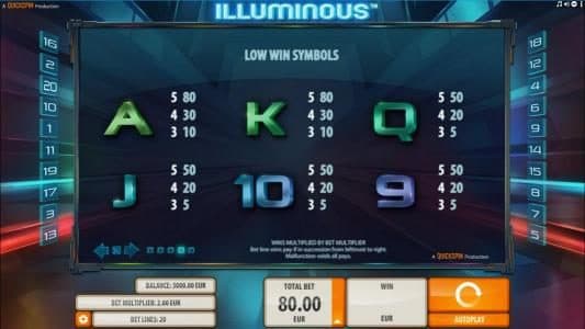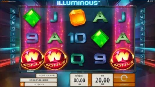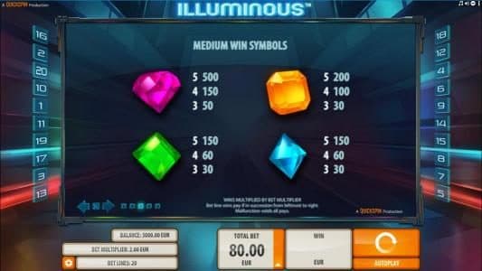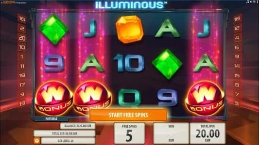 Illuminous, a Quickspin development, which offers 20 fixed Paylines and five reels. Players will be able to take advantage of a magical theme that provides a huge opportunity to win big with every spin. Players will find many bonus features had been included to ensure massive winnings with wild symbols, bonus symbols, free spins and a fantastic free spin bonus feature. Payouts come in with all types of sizes, which include a jackpot of 500 coins.