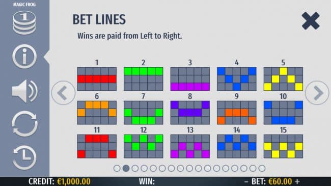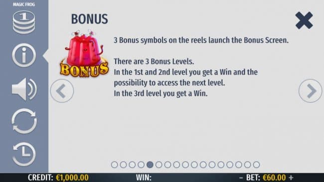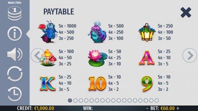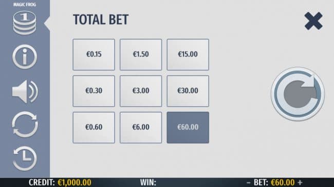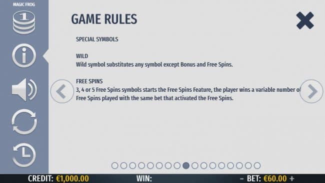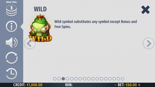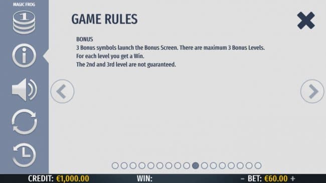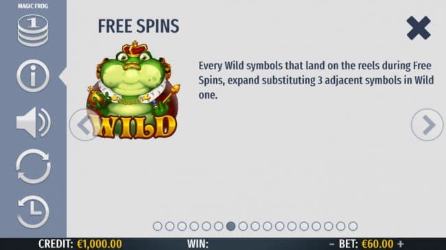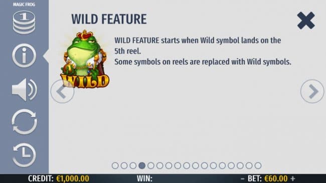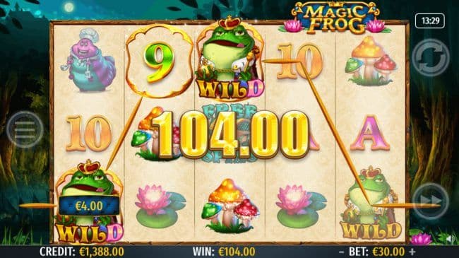 We say the slot feature piece of Magic Frog is really cool. Following are explanations on the extras you are able to get. If you enjoy huge pay outs, the Wild Feature would appear to have been designed for you. Simply get wild symbol landing on the 5th reel to launch. A Bonus Game is launched by getting three bonus symbols on the reels, this feature appears to produce quite good. By getting three free spins symbols on the reels the bonus round triggers. This Free Spins is a decent way to generate winnings. I have to grade Magic Frog 5 out of 5 stars on the bonus rounds. Bonus games add so much depth to modern slots, this is by far the best feature of Magic Frog.